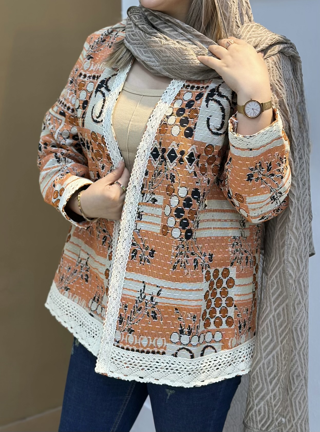 مشخصات اصلیرنگ / سرخابی / نارنجیسایز / 1 / 2مشخصات فرعیجنسنپالیقد۷۰ سانتی مترجزئیاتکت با نوار کنفی تزیین شده