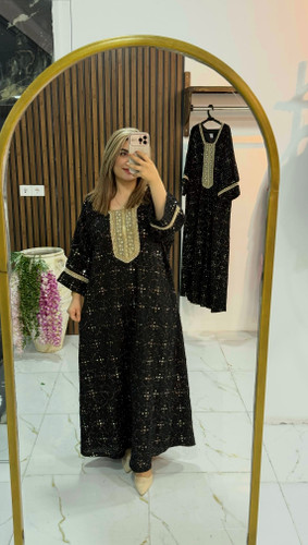 کفتان بلند سوزندوزی جنس لینن دارای دو رنگ مشکی و کرم